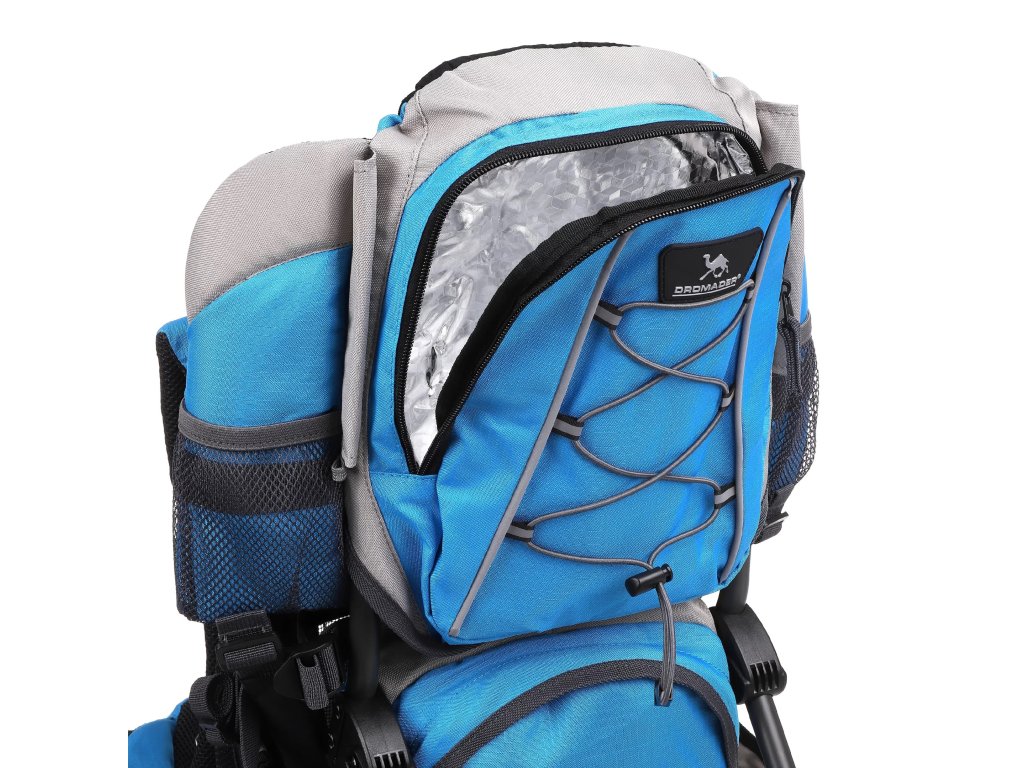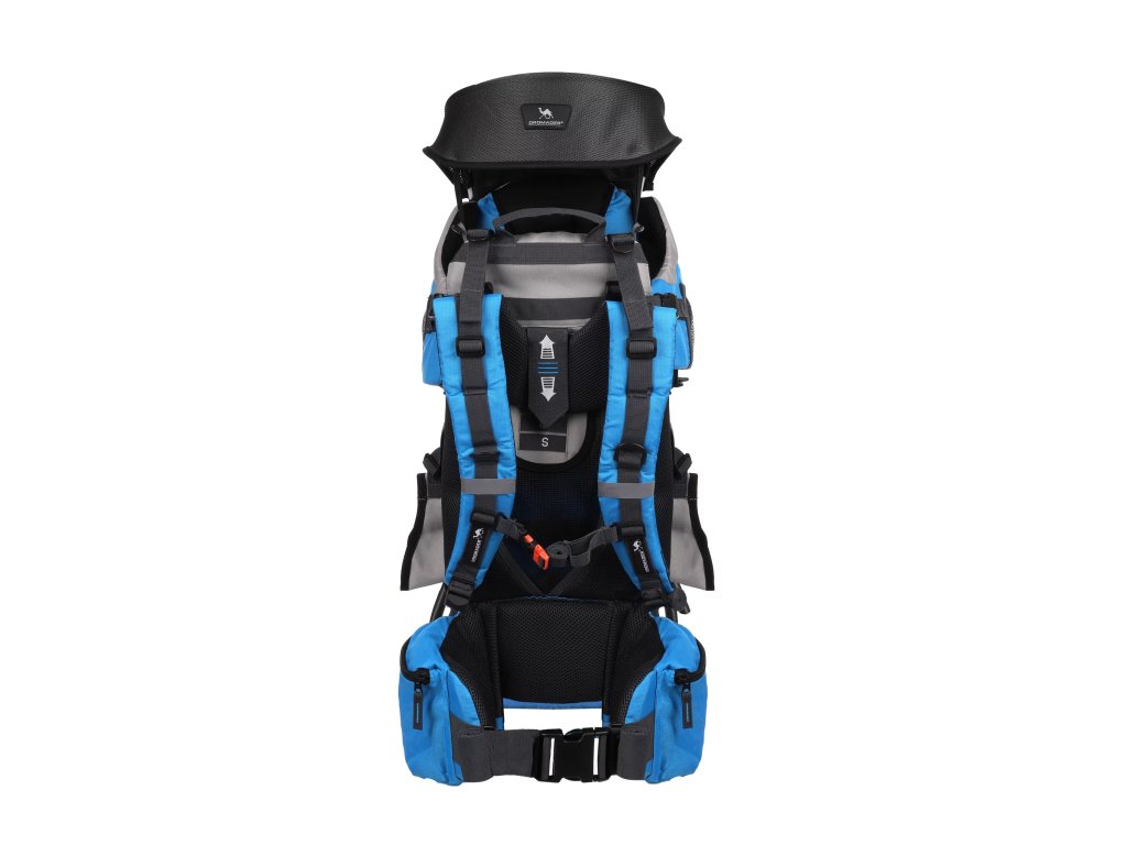 Detský nosič Dromader KANGOO je bezpečný na celodenné výlety a má výškovo nastaviteľné bezpečnostné pásy a posed, čo umožňuje nastavenie pre individuálne potreby každého dieťaťa a zároveň tým zaisťuje pohodlie a bezpečnosť. Množstvo odkladacích priestorov ešte viac podčiarkuje praktickosť nosiča – veľká predná komora spoľahlivo pojme detskú výbavu, vrchné vrecko na zips je deálne na cennosti alebo napr. turistickú mapu. Po stranách nájdete dve vrecká zo sieťoviny na fľašu alebo termosku.
