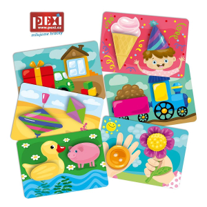 Sada obsahuje 8 pružných plastových doštičiek so suchým zipsom a 16 samostatných dielikov, ktoré sa upevňujú na doštičky pomocou suchého zipsu. 🎭🖐️ Vďaka tejto vychytávke jednotlivé diely pevne držia na svojom mieste a nespadnú. 🔒✨ Všetky časti sú vyrobené z odolného, ale tenkého plastu so špeciálnou povrchovou úpravou, ktorá je príjemná na dotyk pre deti. 🤲👶