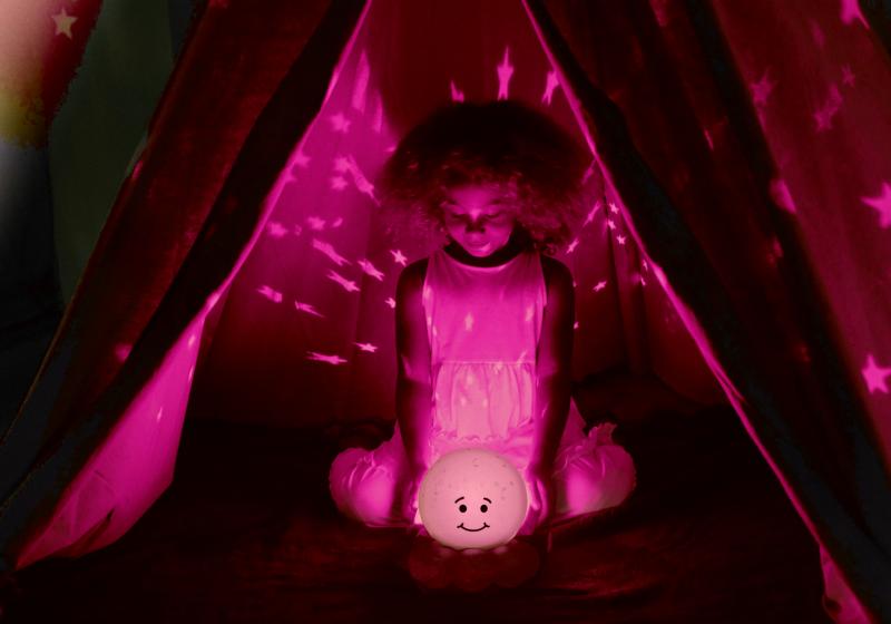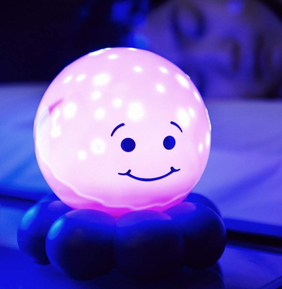 Táto originálna hračka pomáha deťom pohodlne zaspať tým že premieta hviezdy a podvodných kamarátov na strop a steny izby.